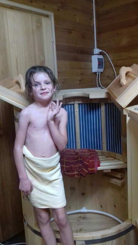 Ну что сказать - это просто чудо! Реальность превзошла все ожидания! А какой запах! Баня так пахла, что все соседи удивлялись, какой необычный аромат! Внутри светло, уютно, для 2-3 человек - идеально, места всем хватает. Муж поставил дополнительные лампочки в каждом помещении, поэтому света предостаточно.