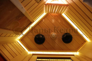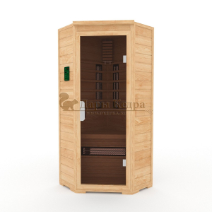 Это специально оборудованная кедровая кабина для прогрева тела человека сухим теплом. Воздух в таких парных не нагревается. Инфракрасные лучи воздействуют на тело, равномерно прогревая мышцы, суставы и органы. Керамические излучатели похожи на лампы, имеют высокую температуру нагрева, поэтому защищены противоожоговыми решетками. Тело человека в таких саунах нагревается интенсивнее. Работает кабина за счет электричества. Установка сауны в угол, позволяет рационально использовать пространство помещения. Подходит как для домашнего использования, так и для коммерции.