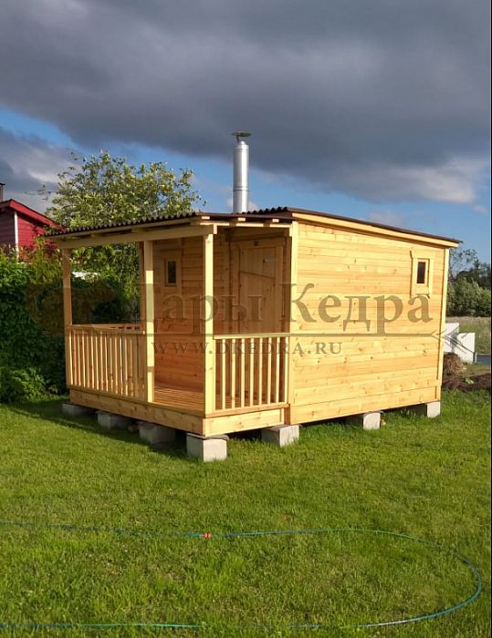 Проекты каркасно-щитовых строений выглядят более стандартно, тем не менее по внутреннему благоустройству они не уступают в комфорте бочкам. По индивидуальному согласованию с заказчиком возможно увеличение площади комнаты отдыха и террасы. На террасе можно расположить садовую мебель, что позволит совместить функционал парной с беседкой. Таким образом, покупая одно изделие, вы получаете баню и комфортную зону для расслабления как внутри помещения, так и снаружи. Далее, в галерее представлены варианты таких проектов. Вы можете выбрать понравившийся и оставить заказ прямо сейчас у нас на сайте. Покупка кедровой бани у производителя - это заведомо выгодно, надёжно и индивидуально согласно Вашим желаниям.