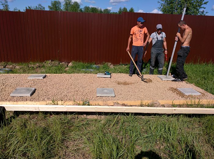 - При желании площадку для установки бани можно залить бетоном или организовать столбчатый фундамент.