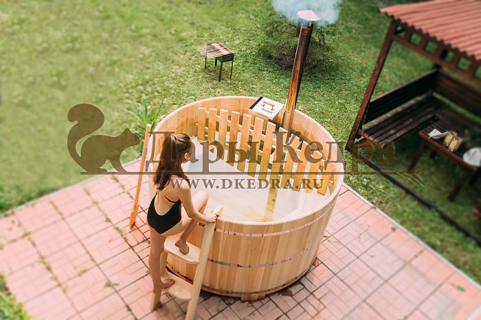 Фурако круглая из кедра с литой термопластиковой вставкой с внешней печью