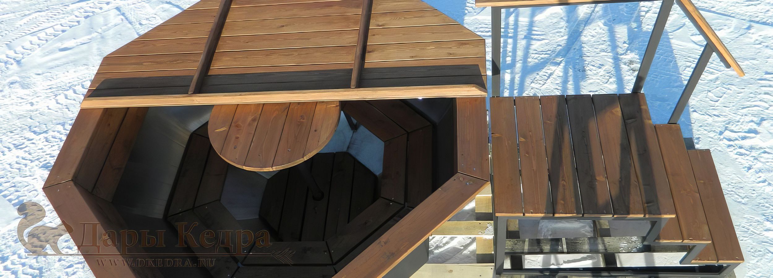 - Кроме того, такая банная конструкция может составить конкуренцию купелям фурако и использоваться в качестве горячего источника даже в мороз.