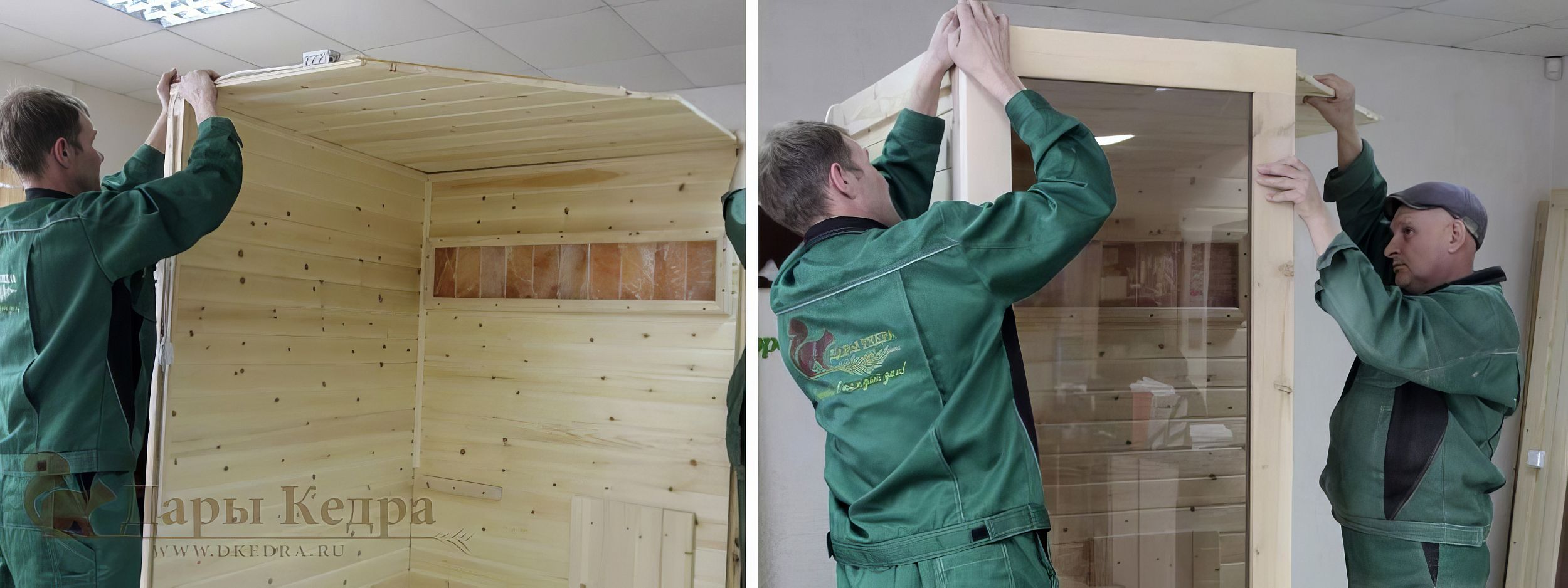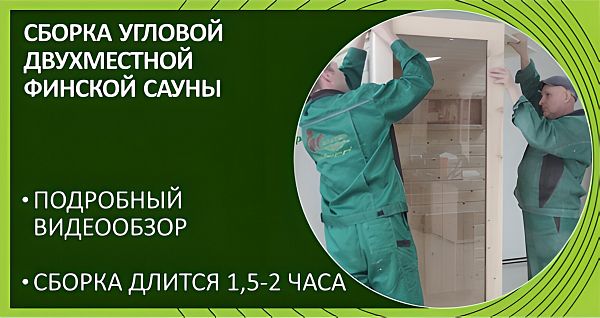 Заключительным этапом будет установка дверных ручек с обеих сторон, светильника, абажура и заглушек по всей поверхности сауны. В среднем на сборку финской кабины потребуется 1-3 часа в зависимости от мастерства сборщиков и технических параметров изделия. Наглядная инструкция по сборке двухместных саун показана ниже на видео. По аналогичной схеме собираются и другие кабины (одно-, трёх-пятиместные).