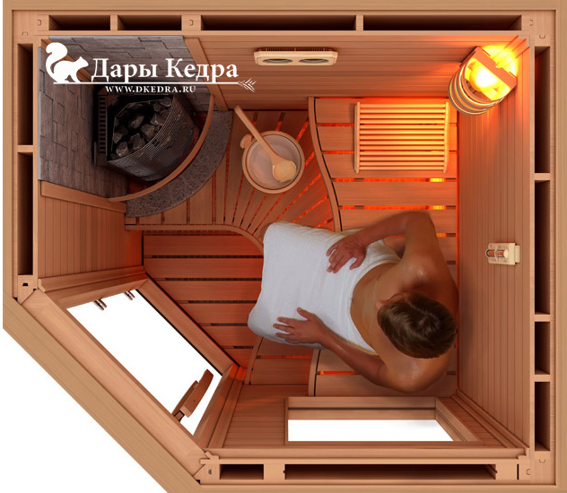 Сауна, изготовленная из древесины кедра, полезна для здоровья: При нагревании древесина кедра выделяет фитонциды, которые не только благотворно влияют на дыхательную систему, оздораваливая организм в целом, но и обеззараживая воздух от вредных бактерий. Доказано научно, что в помещении, где стоят изделия из кедра, воздух чистый и люди гораздо меньше болеют различными инфекциями. Инфракрасное тепло имеет лечебно-профилактический эффект. Системное посещение избавит или облегчит течение следующих заболеваний: ОРЗ, ОРВИ, повышенный уровень холестерина, лишний вес, варикоз, анемия, бронхиты и хронические пневмонии, лор-заболевания, частые отравления, гастрит, язва желудка и двенадцатиперстной кишки, нервные растройства и психозы.