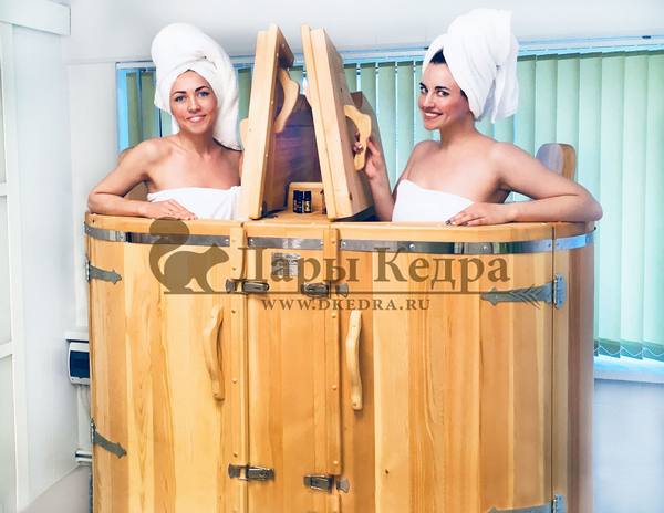 Принцип работы кедровой бочки очень схож с парением в русской бане: влажный пар, насыщенный травами и фитонцидами кедра, при температуре воздуха 45-60С глубоко воздействует на тело человека. При этом влажность воздуха внутри фитобочки по аналогии с русской баней составляет 60-75%. Такой диапазон считается наиболее комфортным для русского человека, окружающая среда которого в зимнее время года отличается низкой влажностью. Сухой морозный воздух провоцирует организм на потребность в согреве с высоким процентом влажности. Поэтому с древних времен на Руси всегда строили бани с целью субботнего омовения, оздоровления и закаливания в парной.