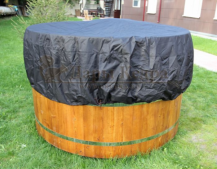 Уличная купель с подогревом как правило представляет собой круглую глубокую чашу, изготовленную из кедра. Теплая, чуть горячая вода (40-45С) в купели не только благотворно влияет на психо-физическое состояние, но и имеет иммунномодулирующее действие за счет фитонцидов, входящих в древесину кедра. Фитонциды активируются при нагревании, поэтому важно поддерживать температуру воды не ниже 37С. Она наливается таким образом, чтоб человеку, принимающему процедуры, жидкость не доходила уровня сердца. Чтобы усилить лечебный эффект, в воду можно добавить фитосборы или аромомасла.